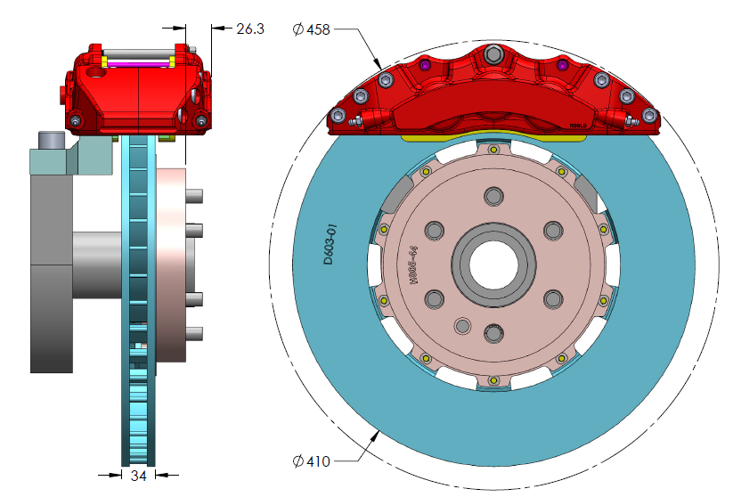 • 2 ea Front 2 pc rotors (410x34mm vs. OE 350x32mm)